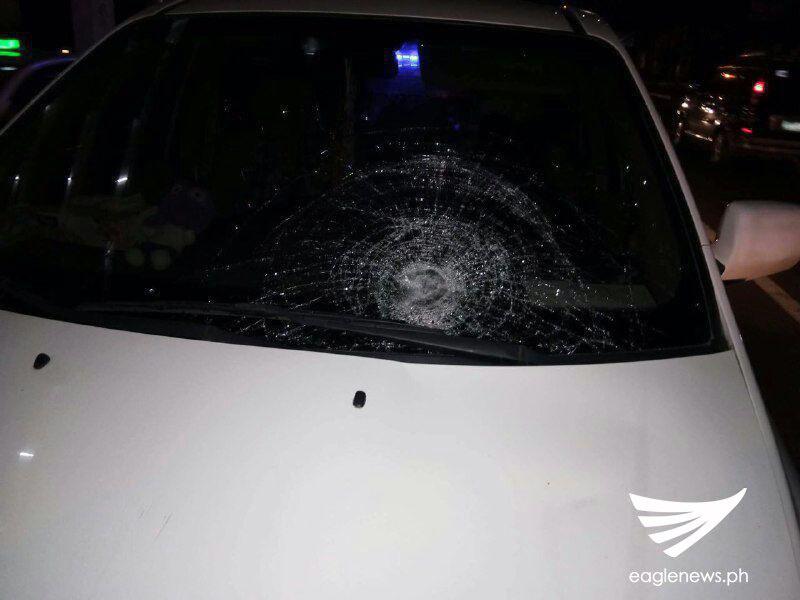 Halos mawasak ang windshield at mayupi ang hood ng SUV sa lakas ng impact.