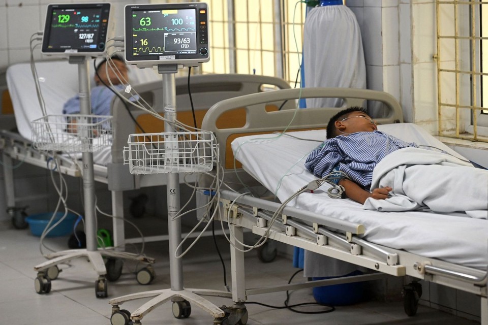 Victims, who were injured during a large fire at an apartment block, rest in a ward at a hospital in Hanoi on May 24, 2024. A fire that ripped through a small apartment complex in central Hanoi early May 24 has killed at least 14 people and injured three others, police said. (Photo by Hoang An / AFP)
