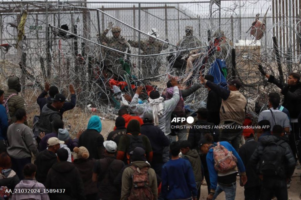 HOUSTON, March 22, 2024 (AFP) – A “large group of migrants” crossing into the United States from Mexico broke through razor wire Thursday and rushed the border wall, the border patrol said, the latest episode in a simmering national immigration crisis.