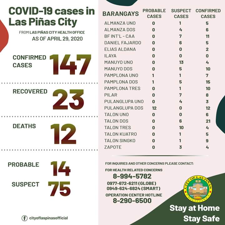 According to the Las Piñas government, of the 147 total COVID-19 cases, 23 have recovered and 12 have died.