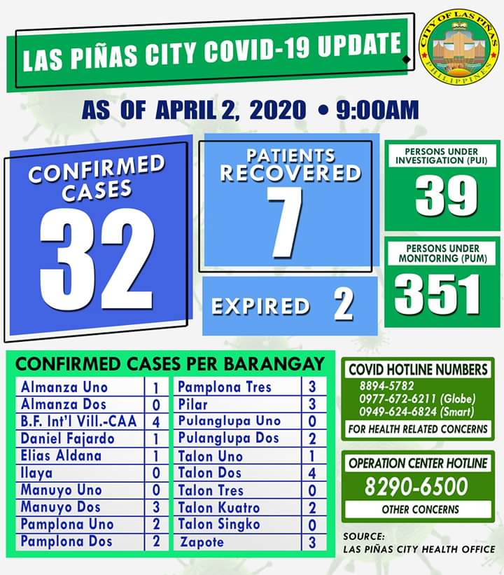 (Eagle News)–The number of coronavirus disease 2019 cases in Las Piñas has reached 32.