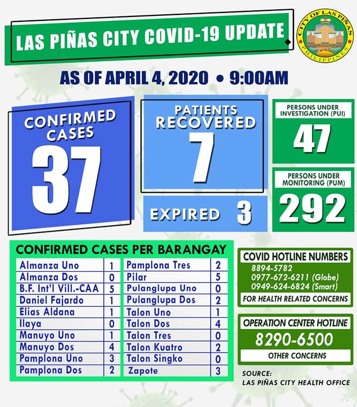 (Eagle News)–Las Piñas has recorded 37 coronavirus disease 2019 cases.