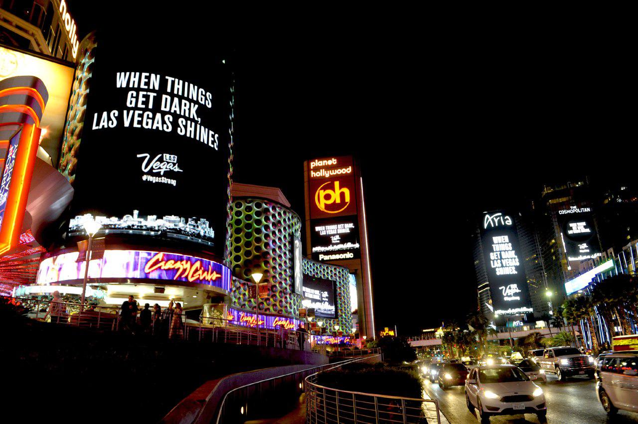 The entertainment capital of the world reminded visitors and residents, “When things get dark, Las Vegas shines.” Several marquees along the strip displayed this message to recognize the unity and goodwill the entire nation displayed after the shooting that shocked the world.