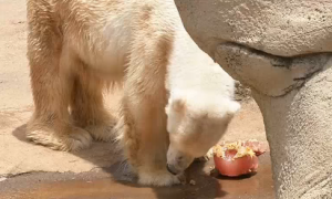 In the wild, polar bears live for about 18 years and tip the scales at 400kg (880 lbs). Wang is now 250kg after losing muscle mass due to extreme old age and liver failure.