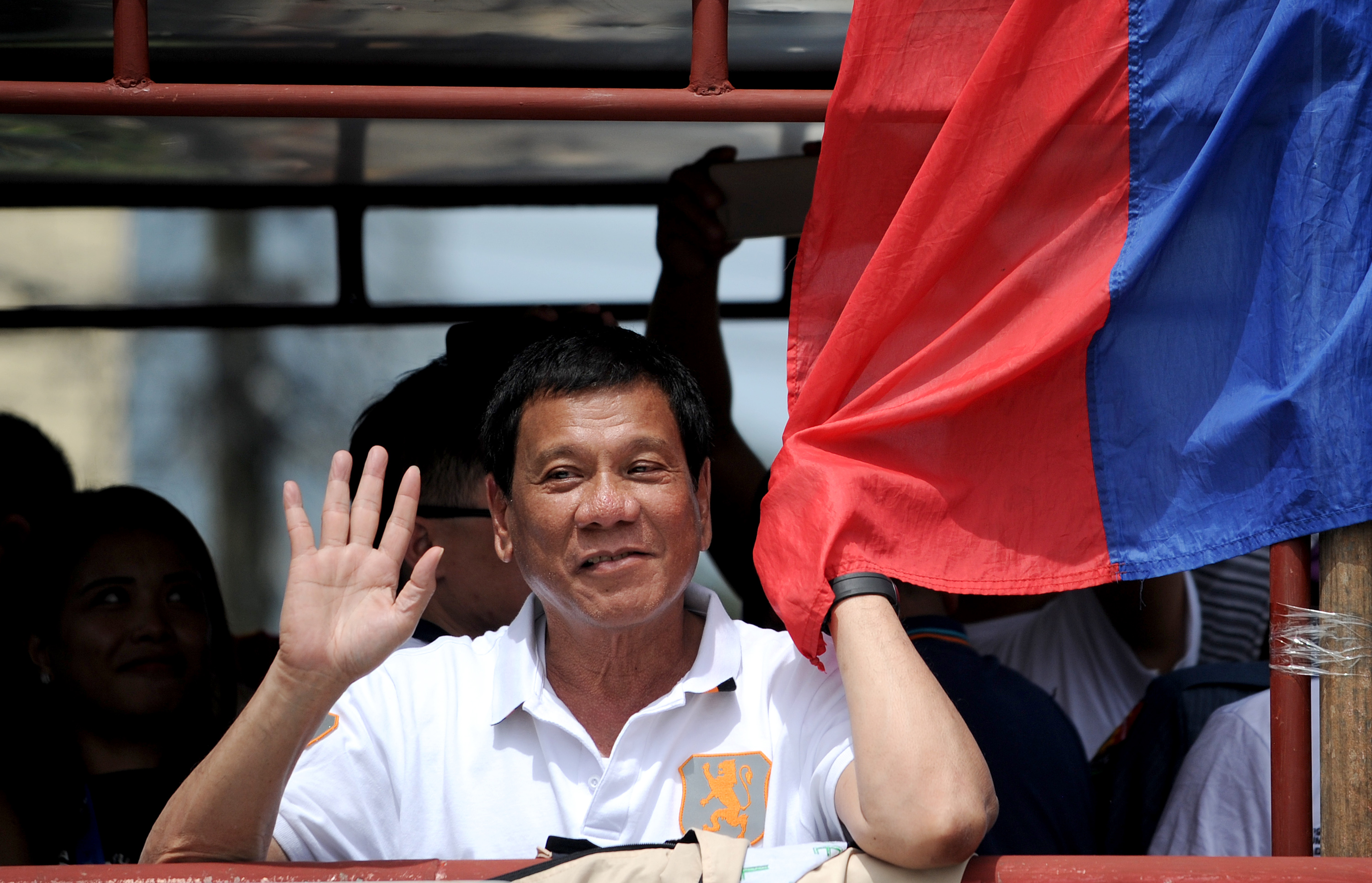 Rodrigo Duterte curses the pope’s mother and jokes about his own infidelities, but many voters in the Philippines want to elect him president so he can begin an unprecedented war on crime. / AFP PHOTO / NOEL CELIS