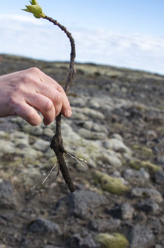 Armed with a red “potti-putki”, a Finnish designed tube-shaped tool, Oskarsson is planting lodgepole pines and Sitka spruces, two species of North American conifer trees, in an attempt to protect the nearby town of Thorlakshofn from recurring dust storms.