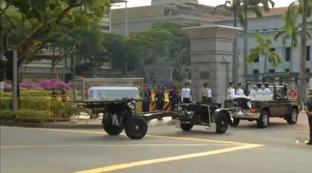 Chants of “Lee Kuan Yew” rang out from the crowd as the carriage entered the colonnaded Parliament House in the heart of the city-state’s business district, where his body will lie in state until Saturday (March 28). The funeral is on Sunday (March 29).