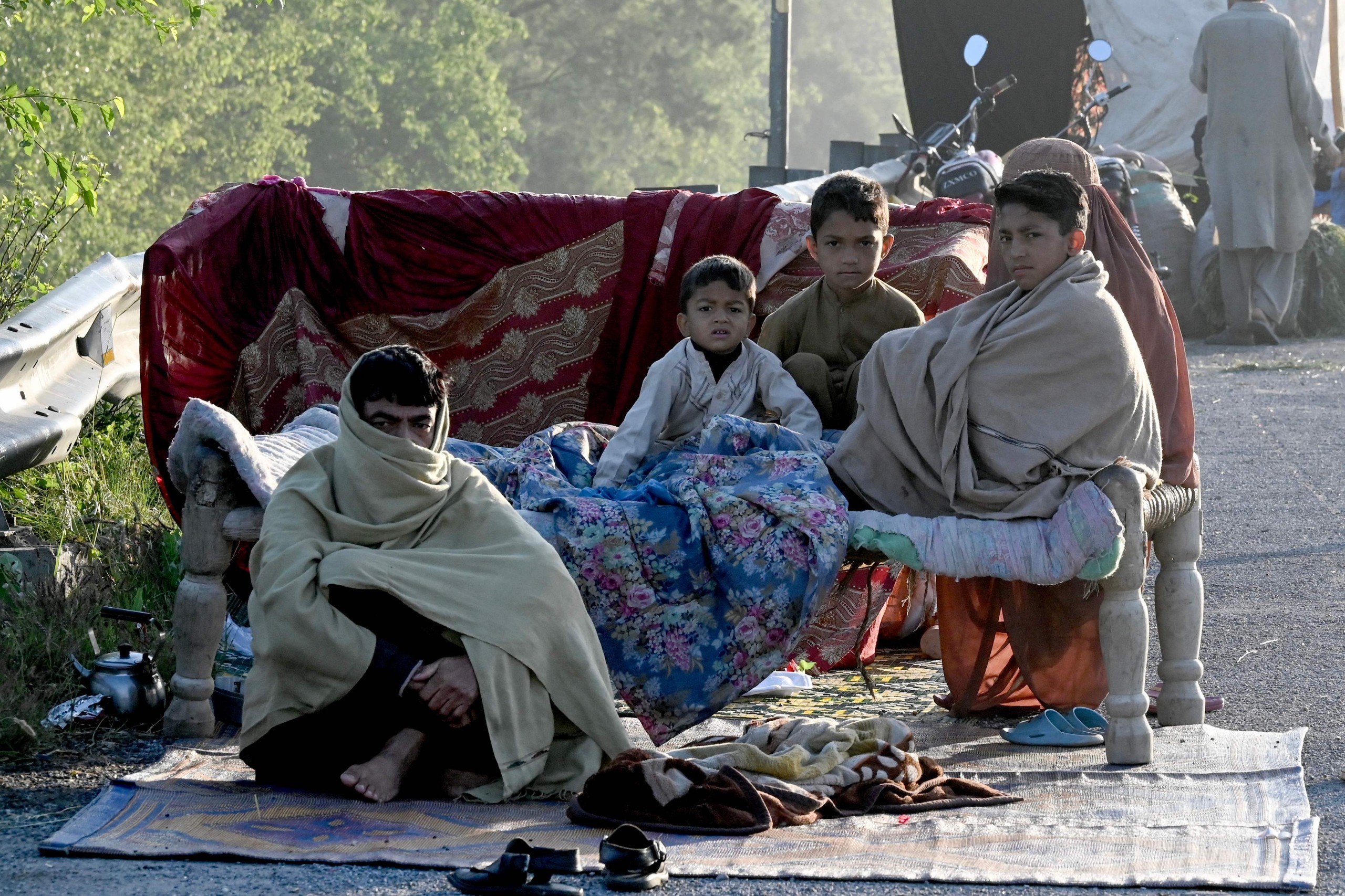 Villagers whose homes were inundated with water were forced to seek refuge on higher ground, including on the shoulders of motorways, creating makeshift tents with plastic sheeting and bamboo sticks.