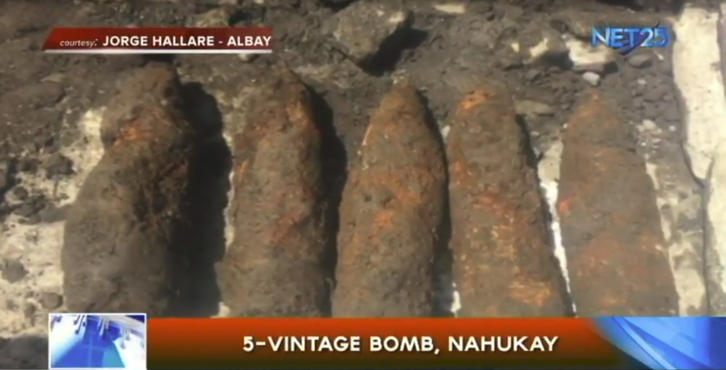 DARAGA, Albay (Eagle News) – Limang bomba na gamit pa noong panahon ng Hapon ang narekober sa construction site ng Jiggy’s Terminal sa Purok 1, Brgy. Kimantong, Daraga, Albay nitong weekend.