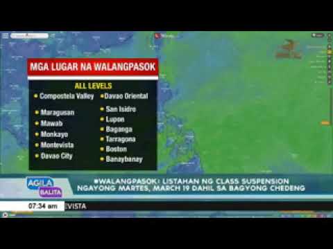 Eagle News – Classes are suspended in Davao Region on Tuesday, March 19 due to tropical depression Chedeng.