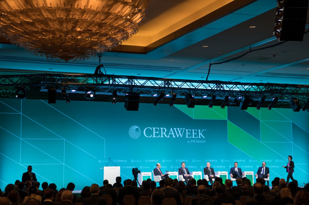 In a room reserved for him at the CERAWeek convention, Sabel shows a few journalists a video of tugboats, which he said were named after his children, maneuvering near the new plant.