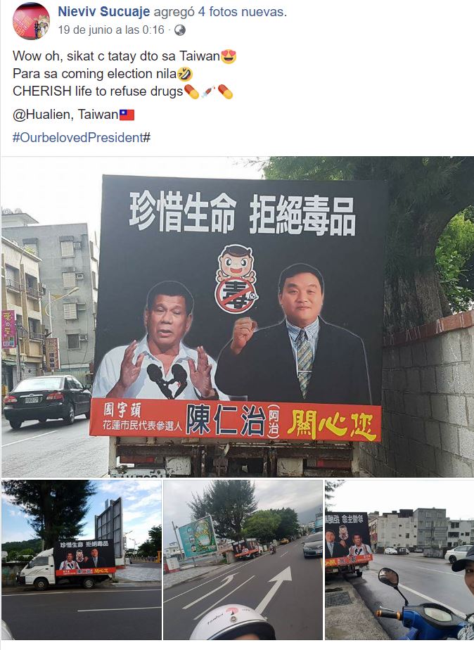 (Eagle News) — A picture of President Rodrigo Duterte is apparently being used to promote the anti-drug campaign of a politician in Taiwan.