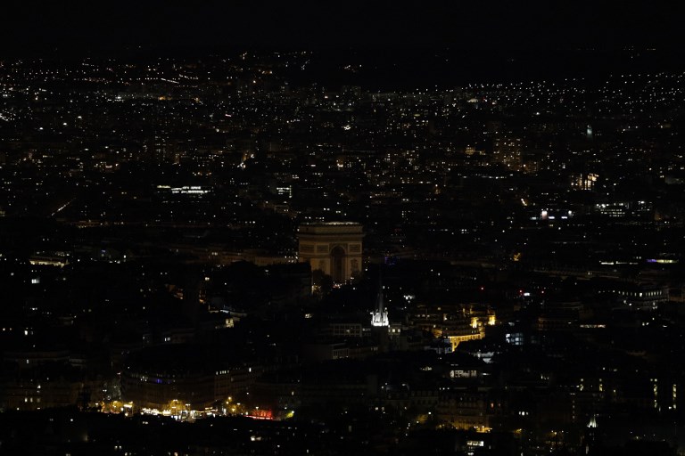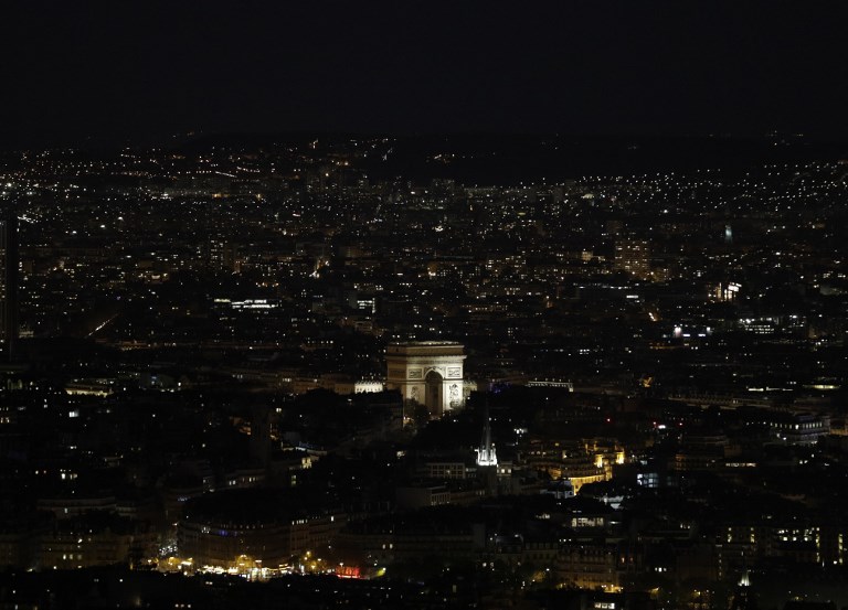 A picture taken on March 30, 2019 shows the Arc de Triomphe illuminated, in Paris, before being switched-off for the a Earth Hour organised by the green group WWF. – Earth Hour is a global call to turn off lights for one hour in a bid to highlight the global climate change (Photo by Geoffroy VAN DER HASSELT / AFP)A picture taken on March 30, 2019 shows the Arc de Triomphe, in Paris, switched-off during the a Earth Hour organised by the green group WWF. – Earth Hour is a global call to turn off lights for one hour in a bid to highlight the global climate change (Photo by Geoffroy VAN DER HASSELT / AFP)