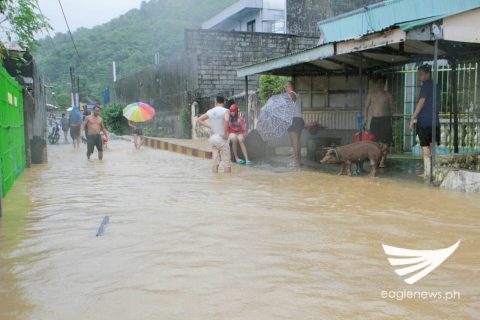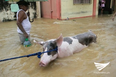 A pig and a man wade through these thigh-deep floods in Atimonan, Quezon, on Tuesday, Sept. 12, 2017. Photo by Edgon Gonzales/Eagle News ServiceThe heavy rains brought by Tropical Depression “Maring” led to flooding in some parts of Atimonan, Quezon on Tuesday, Sept. 12, 2017. Photo by Edgon Gonzales/Eagle News Service