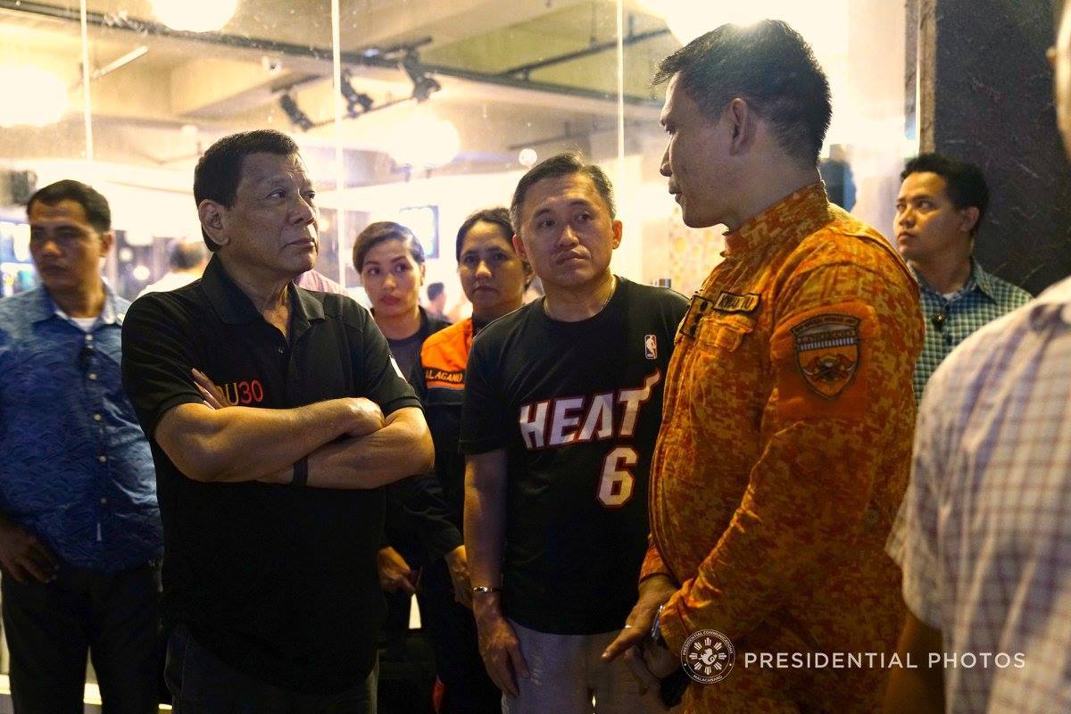 President Rodrigo Duterte visits the kin of Davao mall fire victims. The fire that hit the NCCC mall on December 23, 2017 saw over 30 call center agents killed. /Presidential Communications Operations Office/President Rodrigo Duterte talks to the kin of the Davao mall fire victims. The fire that hit the NCCC mall on December 23, 2017 saw over 30 call center agents killed. /Presidential Communications Operations Office/President Rodrigo Duterte checks the site of the fire on Saturday, December 23, 2017.President Rodrigo Duterte listens to an update of the fire incident in NCCC Mall from Bureau of Fire Protection-11 Regional Director Senior Superintendent Wilberto Tiu on December 23, 2017.