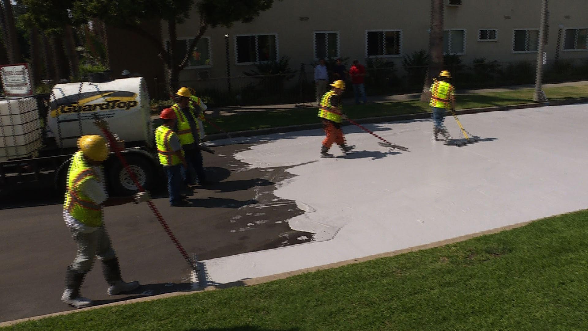 During a demonstration of the technique, Jeff Luzar — sales director at GuardTop, which markets the product — showed how applying the paint could drop street temperatures by about 12 degrees Fahrenheit after just one coat.