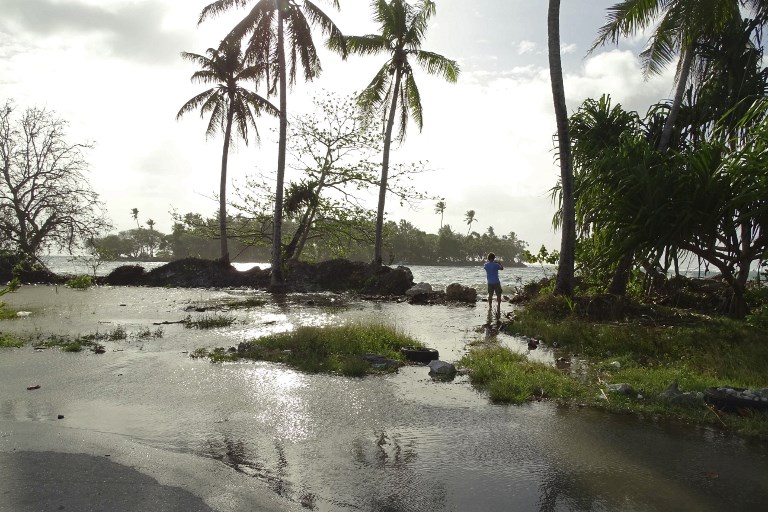 The US National Weather Service in nearby Guam issued an advisory Saturday morning warning “major inundation of one to two feet is possible, especially during high tides inside the lagoon”.