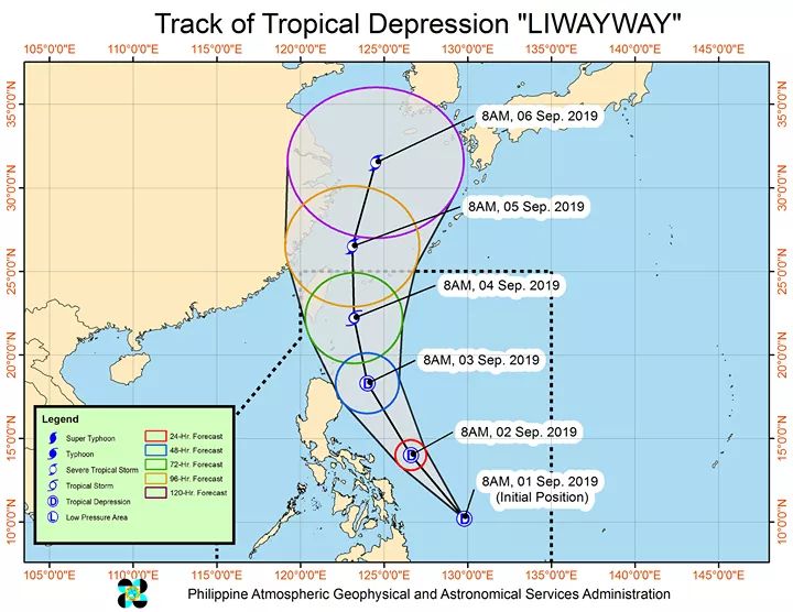 The Philippine Atmospheric Geophysical and Astronomical Services Administration said as of 10 a.m., the center of TD “Liwayway” was 405 kilometers east northeast of Hinatuan or 510 km east of Maasin City, Southern Leyte.