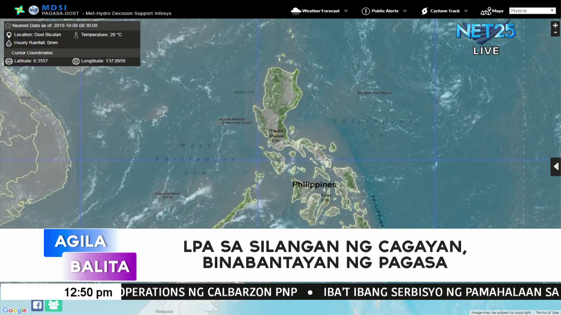 (Eagle News) — Patuloy na binabantayan ng Philippine Atmospheric Geophysical and Astronomical Services Administration (PAGASA) ang isang low pressure area (LPA) sa silangan ng Cagayan.