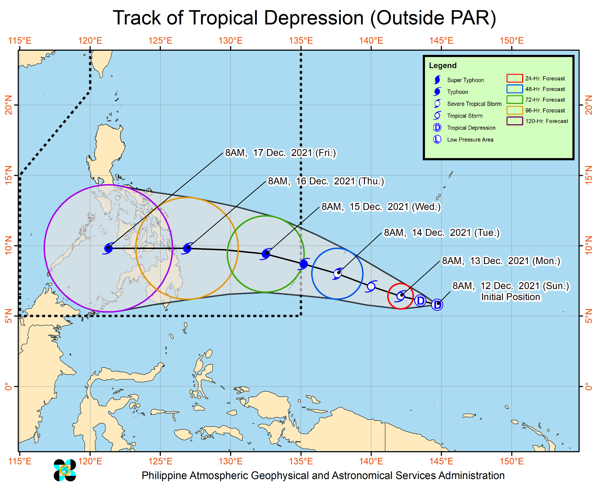 According to PAGASA, the weather disturbance is expected to make landfall over the Eastern Visayas-Caraga area, based on its forecast track.