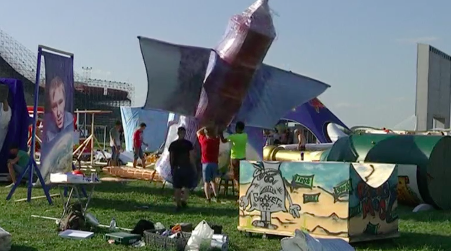 MOSCOW, Russia (Reuters) – Contestants in Moscow’s Red Bull Flugtag competition were ready to crash and get wet on Sunday (August 13) with hand-made aircrafts in a variety of shapes from a goblin bolt thrower to human brain plummeting into a river in Moscow.