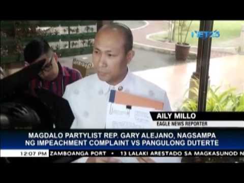 In a press conference on Thursday, Rep. Gary Alejano said the complaint filed in the House of Representatives was based on five grounds: culpable violation of the the Constitution, bribery, betrayal of public trust, graft and corruption, and other high crimes.