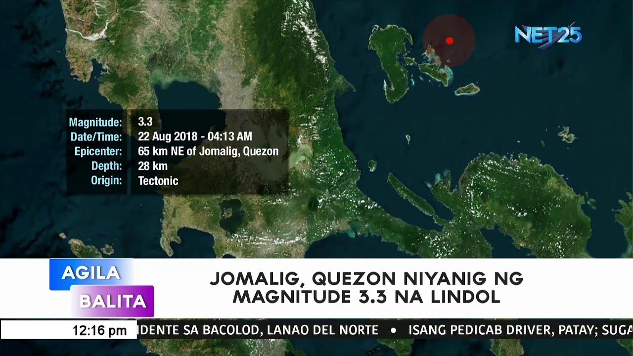 (Eagle News) — A magnitude 3.3 quake jolted the town of Jomalig in Quezon province on Wednesday morning.