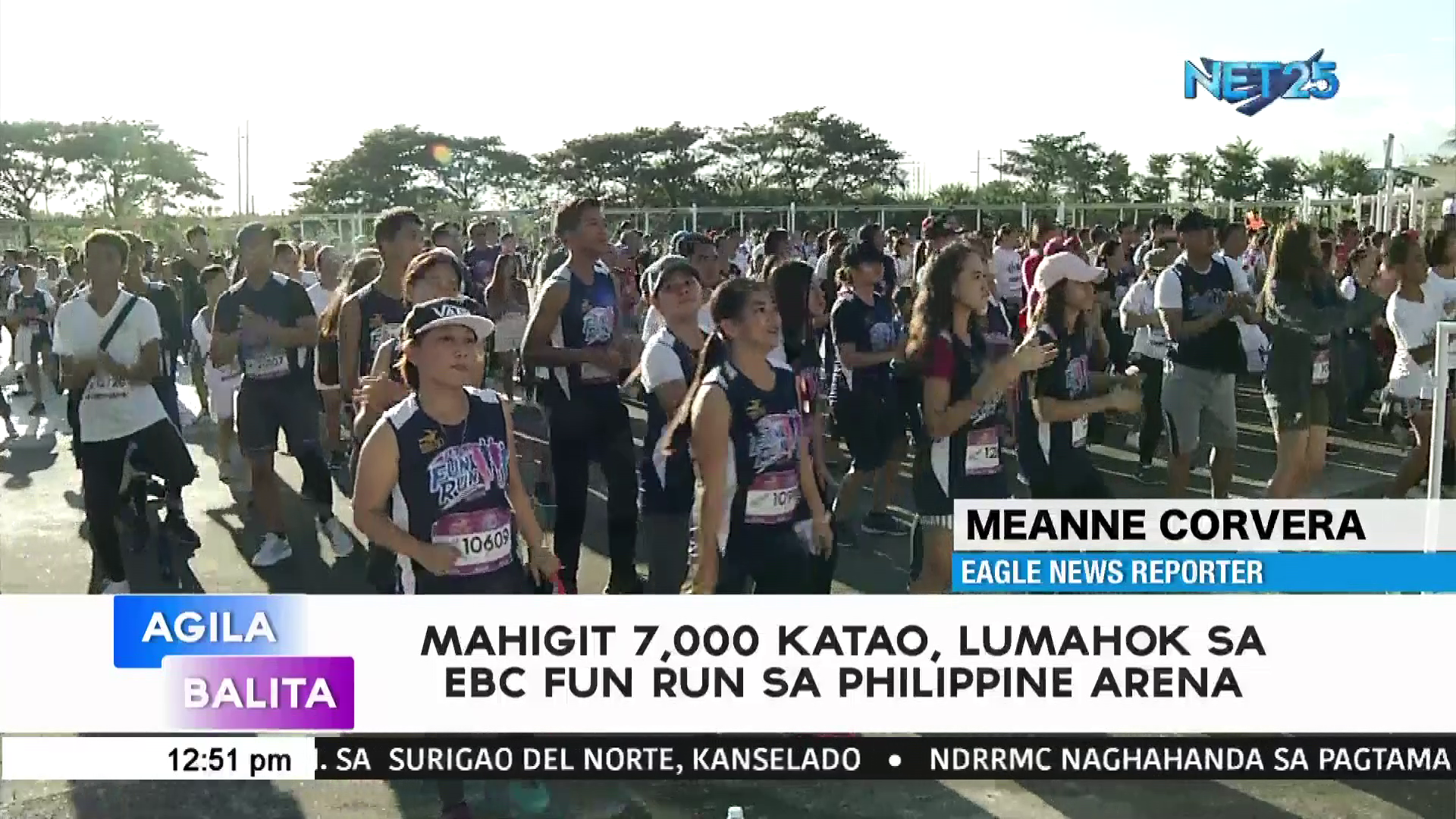 (Eagle News) – Nasa mahigit pitong libo katao ang lumahok sa isinagawang family fun run na inorganisa ng Eagle Broadcasting Corporation na ginanap sa Philippine Arena sa Ciudad de Victoria, Bocaue, Bulacan.