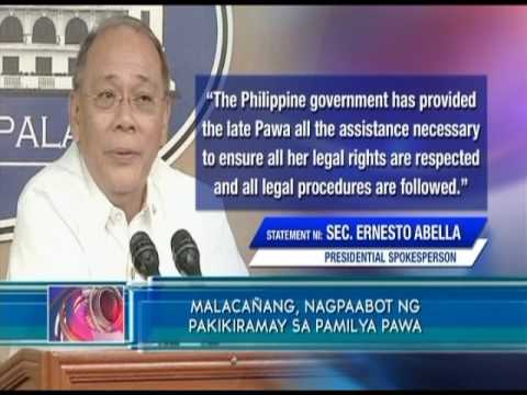 Sa statement na inilabas ni Presidential Spokesperson Ernesto Abella, ikinalulungkot ng Palasyo ang balita matapos na kumpirmahin ng Department of Foreign Affairs (DFA) na natuloy ang pagbitay kay Pawa.
