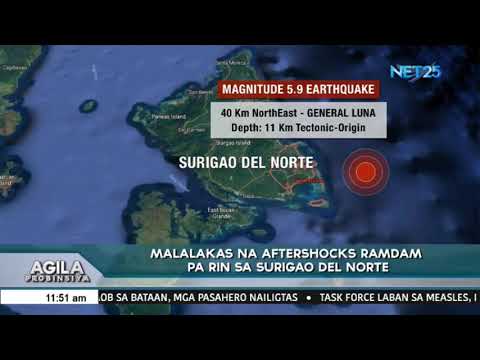 (Eagle News) — Ilang araw matapos ang magnitude 5.9 na lindol na tumama sa bayan ng General Luna sa Surigao Del Norte noong Biyernes, Pebrero 8, patuloy pa ring nararanasan ng lalawigan ang malalakas na pagyanig.
