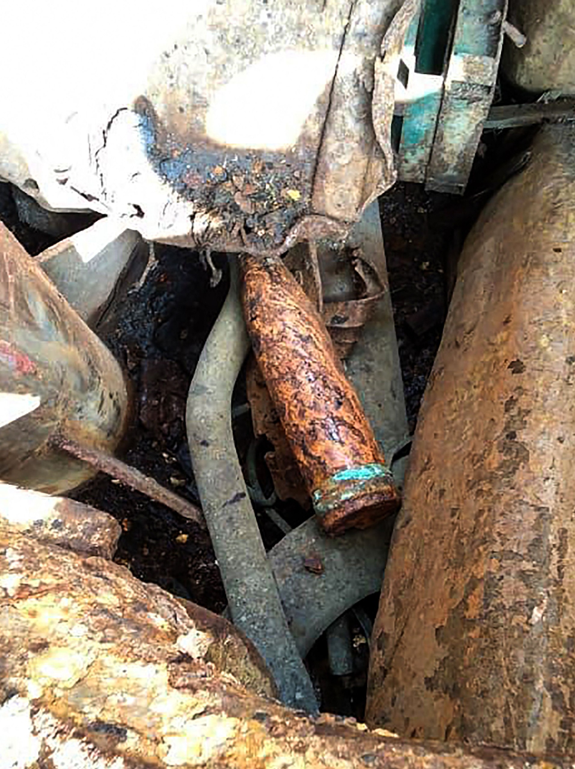 Photos and a video shared by the coastguard showed large pieces of corroded metal and shells as well as a large crane and gas torches used to cut metal on board the ship.
