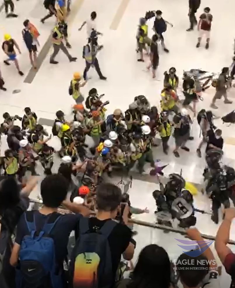 Hong Kong clashes turned violent inside a mall late evening on Sunday, July 14, 2019. (Photo grabbed from video taken by EBC correspondent in Hong Kong, Kit Wong, and her team/ Eagle News Service)