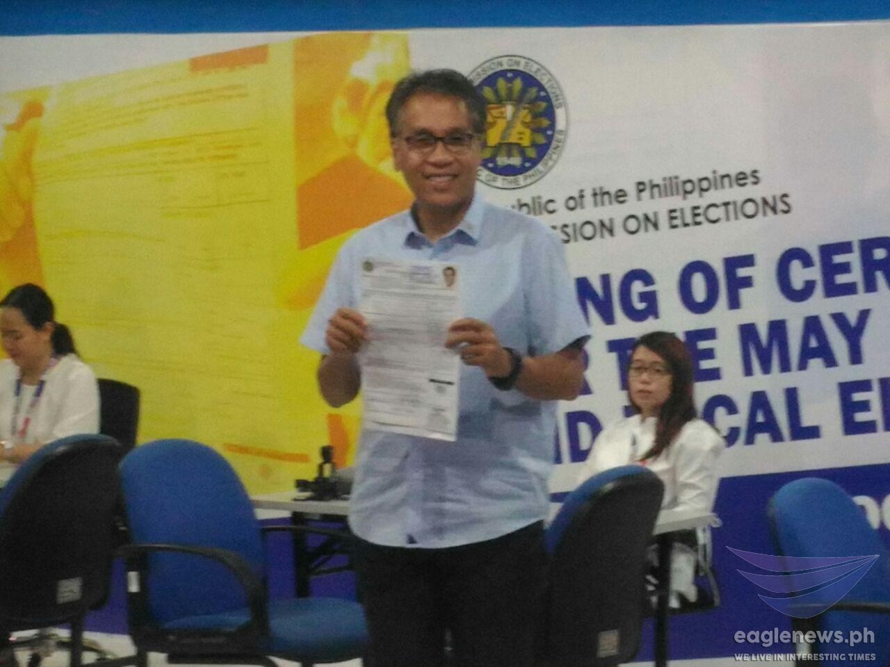 (Eagle News) — Former presidential aspirant Manuel “Mar” Roxas II who lost to President Rodrigo Duterte in the May 2016 national elections filed his certificate of candidacy to run as a senatorial bet in the May 2019 elections.