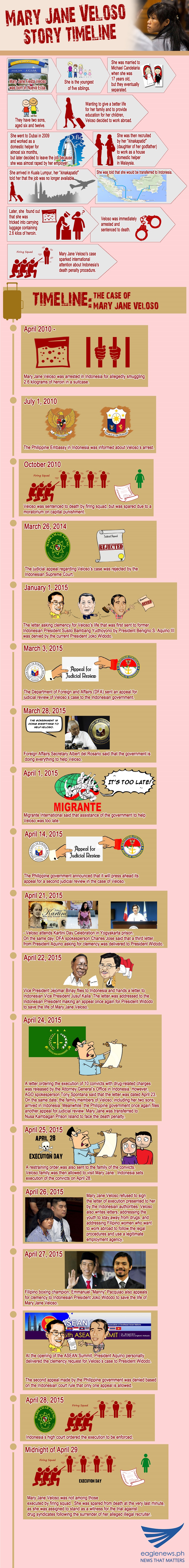 Mary Jane Veloso’s case sparked international attention about Indonesia’s death penalty procedure. Here’s Mary Jane Veloso’s timeline before the incident happens: