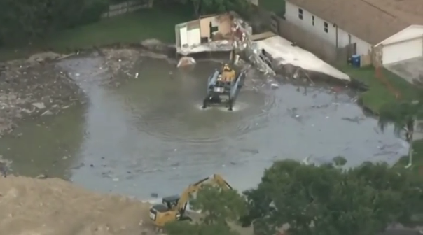 NBC local affiliate footage showed contractors and insurance agencies working at the scene of the sinkhole on Monday. Officials say the process of removing debris and water is ongoing at a calculated pace to ensure the land surrounding the sinkhole does not become unstable.