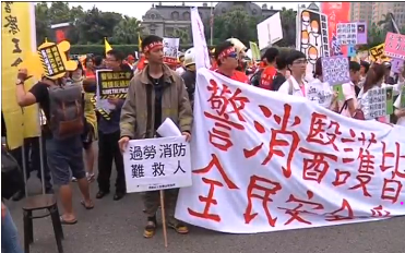 Firefighter Yu Zong-Han urged the government to give them better working hours.