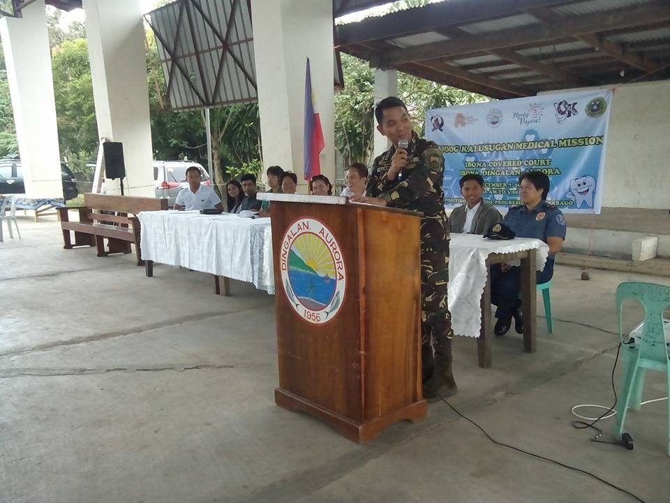 DINGALAN, Aurora (Eagle News) – Napagkalooban ng libreng serbisyong medical, libreng consultation at check-up, at libreng gamot ang mga mamamayan sa Brgy Ibuna, Dingalan Aurora. Ang programang ito ay sa pagtutulungan ng Lokal na Pamahalaan ng Dingalan, Municipal Health Office, Deseret Mabuhay Foundation, Armed Forces of the Philippines (AFP), Philippine National Police (PNP), Department of Environment and Natural Resources (DENR) at Public Health Office. Sa ganitong paraan ay inilalapit na ng lokal na pamahalaan ang tulong medical sa mga kababayang nasasakupan nito upang higit na mapangalagaan ang kanilang kalusugan.
