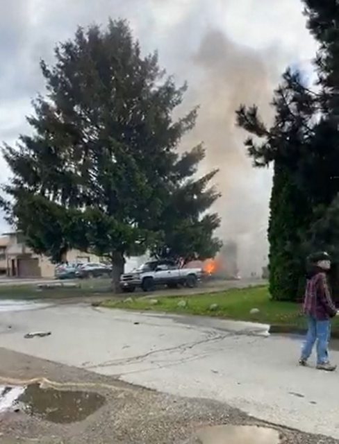 According to local media, the plane crashed into the front yard of a house shortly after taking off from Kamloops Airport late Sunday morning along with one other plane.