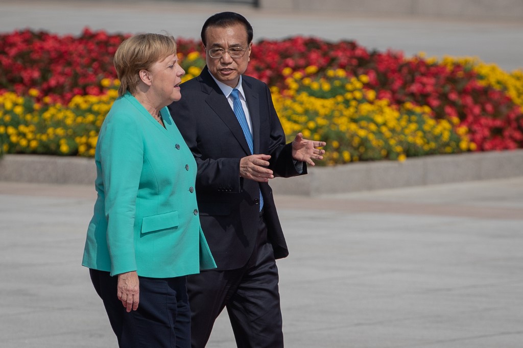 Merkel arrived in China on Thursday with a large business delegation in tow.