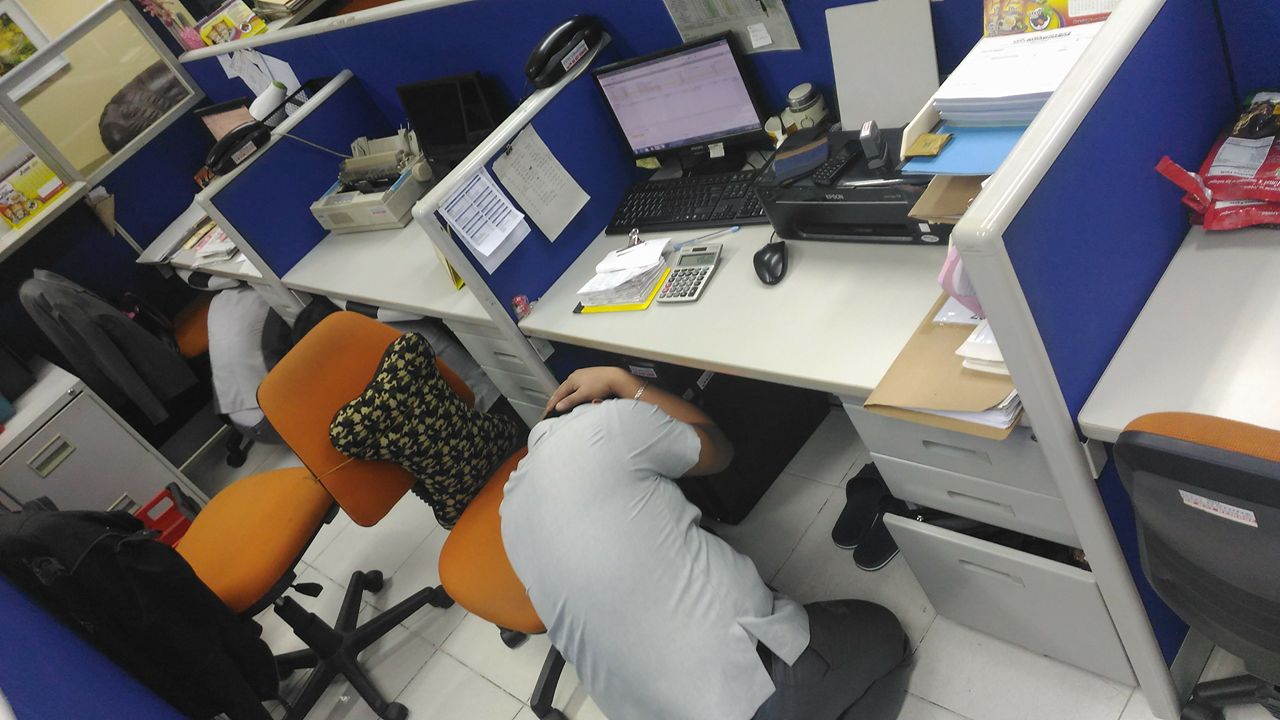 Pagkarinig ng Fire Alarm agad na nagtago ang mga empleyado sa kani-kanilang mesa at pagkaraan ng ilang minuto ay sabay-sabay na lumabas sa kanilang tanggapan, ang iba ay dumaan sa Fire Exit at ang mga iba ay sa mga hagdan ng gusali.