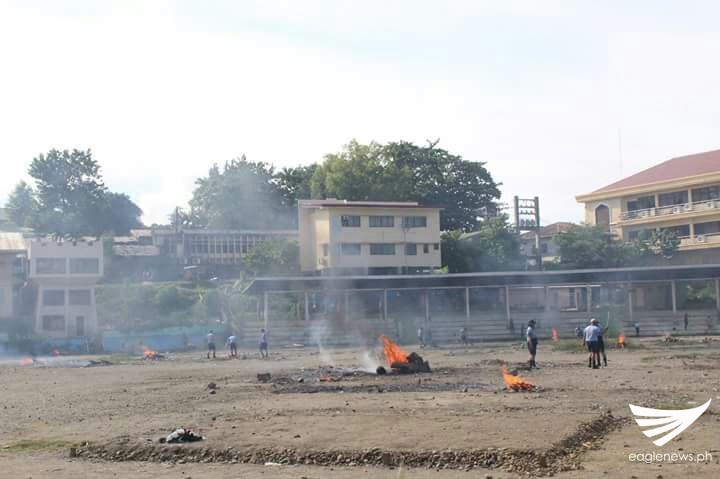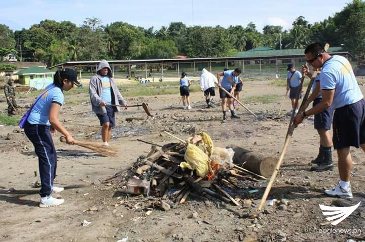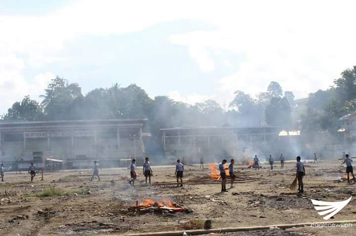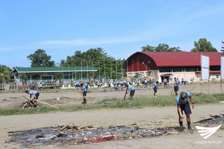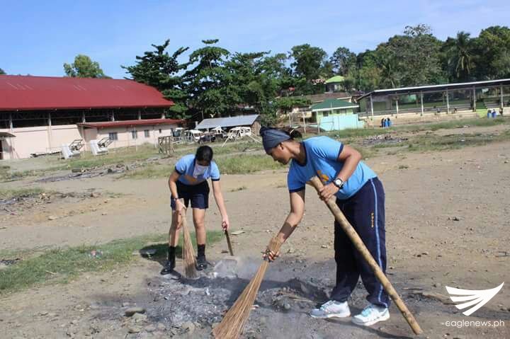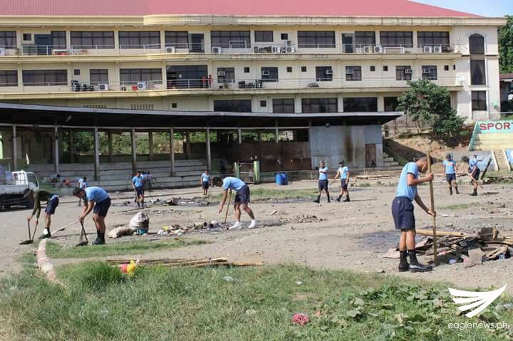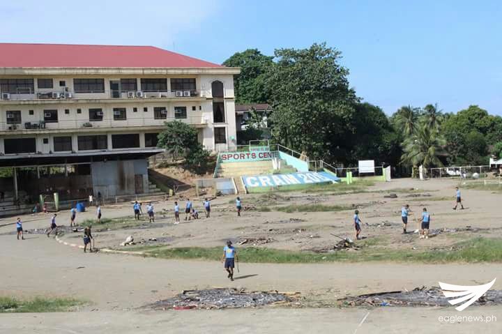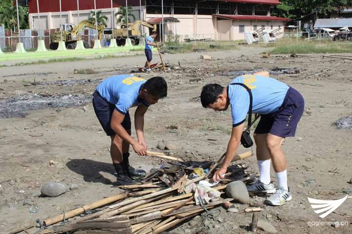 TANDAG City, Surigao del Sur (Eagle News) – Napasabak sa matinding clean-up at rehabilitasyon ng Tandag City Sports Complex ang mga personnel ng Tandag City Police Station at ang ilang mga sundalo ng 402nd Brigade Philippine Army. Ito ay matapos na magsibalik sa kanilang mga tahanan ang mga lumad sa Mararag.