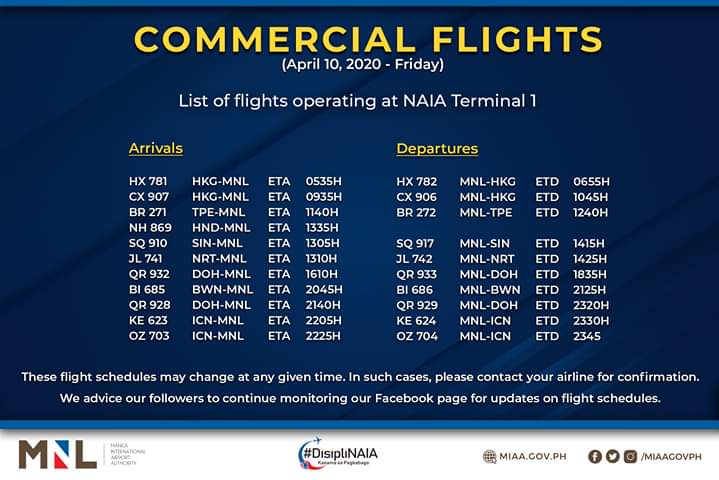 (Eagle News)–The Manila International Airport Authority has released its list of operational commercial flights.