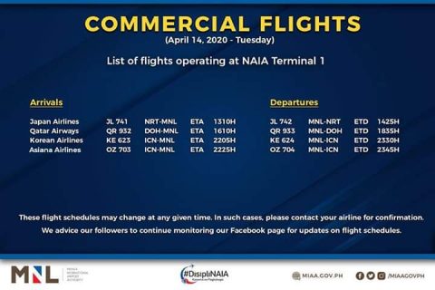 All flights are now concentrated in the Ninoy Aquino International Airport Terminal 1 in a bid to reduce the risk of exposure of airport workers to the coronavirus disease 2019, MIAA said earlier.