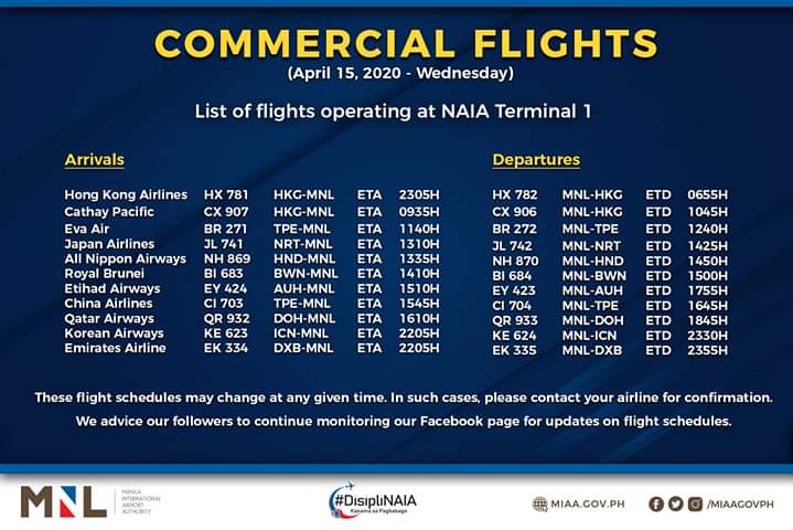 (Eagle News)–The Manila International Airport Authority has released its list of operational commercial flights.