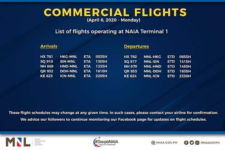 (Eagle News)–The Manila International Airport Authority has released its list of operational commercial flights.