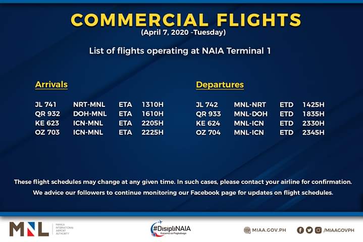 (Eagle News)–The Manila International Airport Authority has released its list of operational commercial flights.