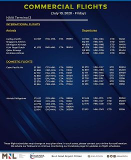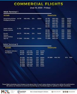 (Eagle News)–The Manila International Airport Authority has released its list of operational commercial flights for Friday, July 10: