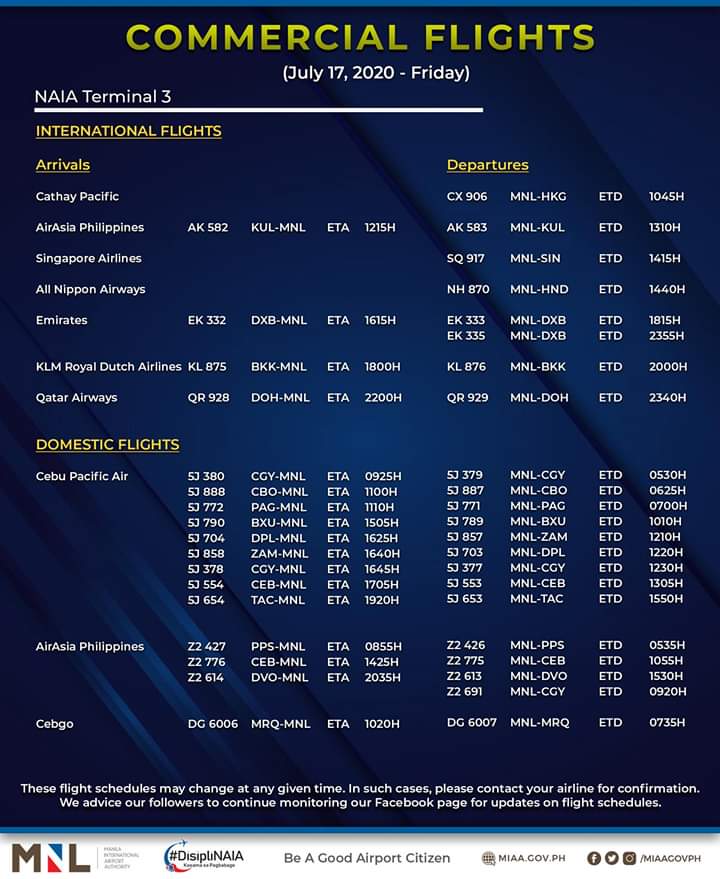 (Eagle News)–The Manila International Airport Authority has released its list of operational flights for Friday, July 17: