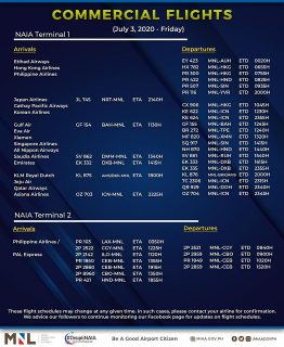 (Eagle News) — The Manila International Airport Authority has released its list of operational commercial flights for Friday, July 3: