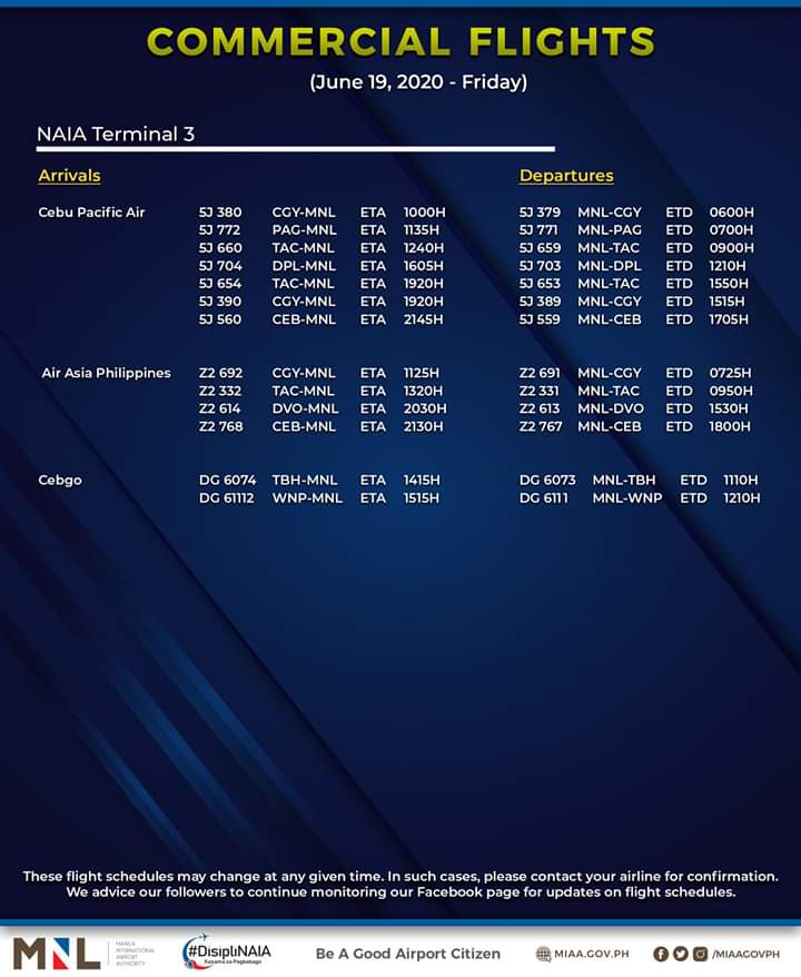 (Eagle News)–The Manila International Airport Authority has released its list of operational commercial flights.